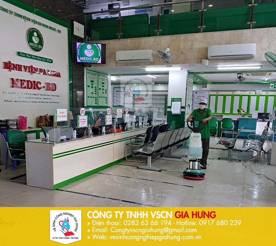 Dịch vụ Tổng vệ sinh Bệnh Viện của Gia Hưng tự hào là một trong những Dịch vụ Tổng vệ sinh Bệnh Viện tốt nhất đảm bảo môi trường sạch sẽ, an toàn cho bệnh viện, chúng tôi cung cấp dịch vụ tổng vệ sinh chuyên nghiệp và đáng tin cậy. Cảm ơn Bệnh viện Medic Bình Dương đã tin tưởng VSCN Gia Hưng!