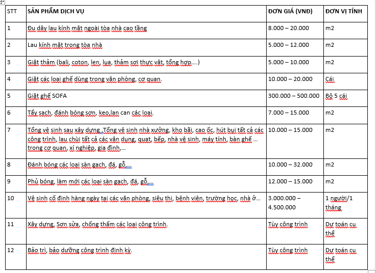 Bảng giá Dịch vụ vệ sinh công nghiệp tại TP.Hồ Chí Minh