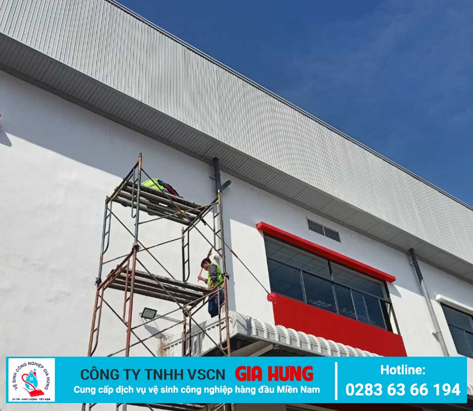 - Vệ sinh trần nhà xưởng: Vệ sinh trần nhà xưởng bằng xe nâng là phương pháp được công ty VSCN Gia Hưng áp dụng cho gói vệ sinh trần nhà xưởng, phù hợp với những nhà xưởng có diện tích rộng, trần nhà cao trên 8 mét trở nên hiệu quả hơn, nhanh hơn và an toàn hơn khi sử dụng xe nâng để làm sạch trần nhà.